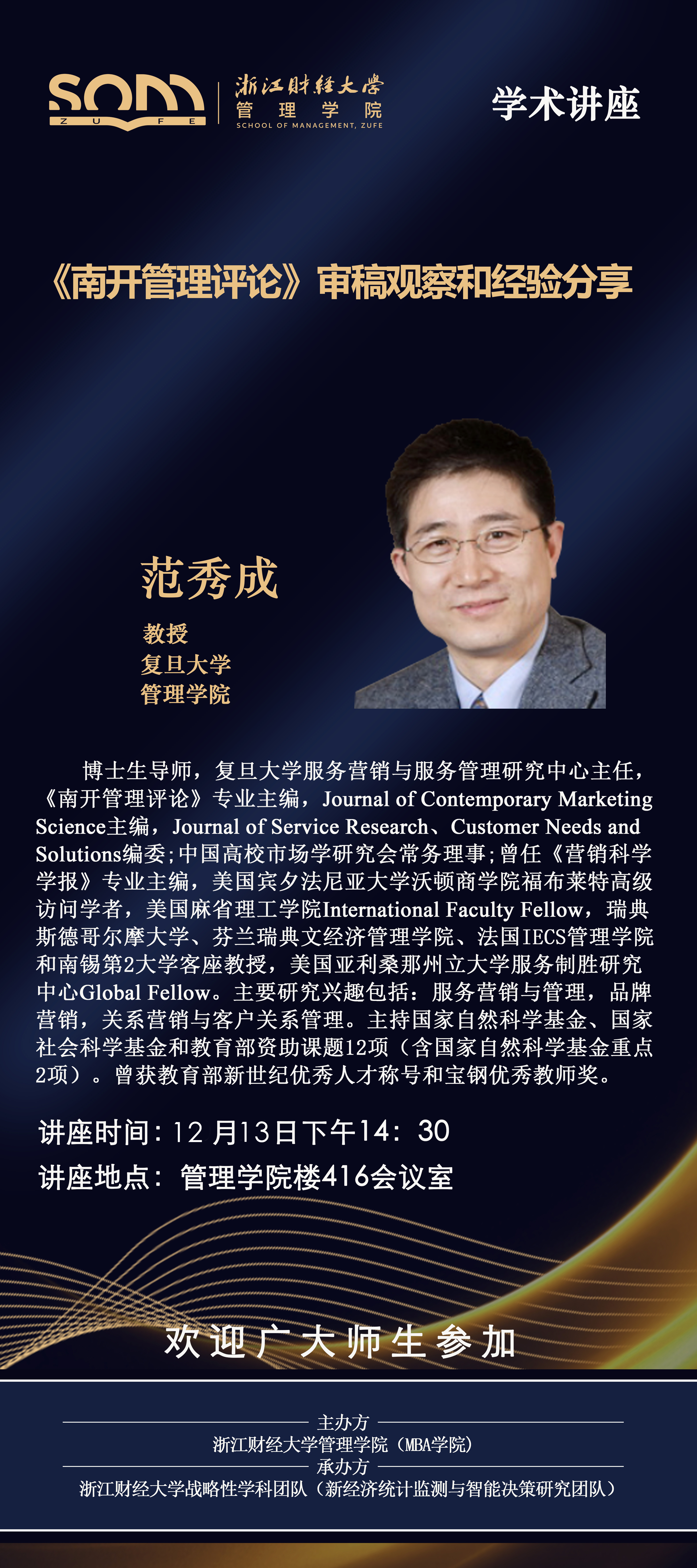 【讲座预告】范秀成教授:《南开管理评论》审稿观察和经验分享