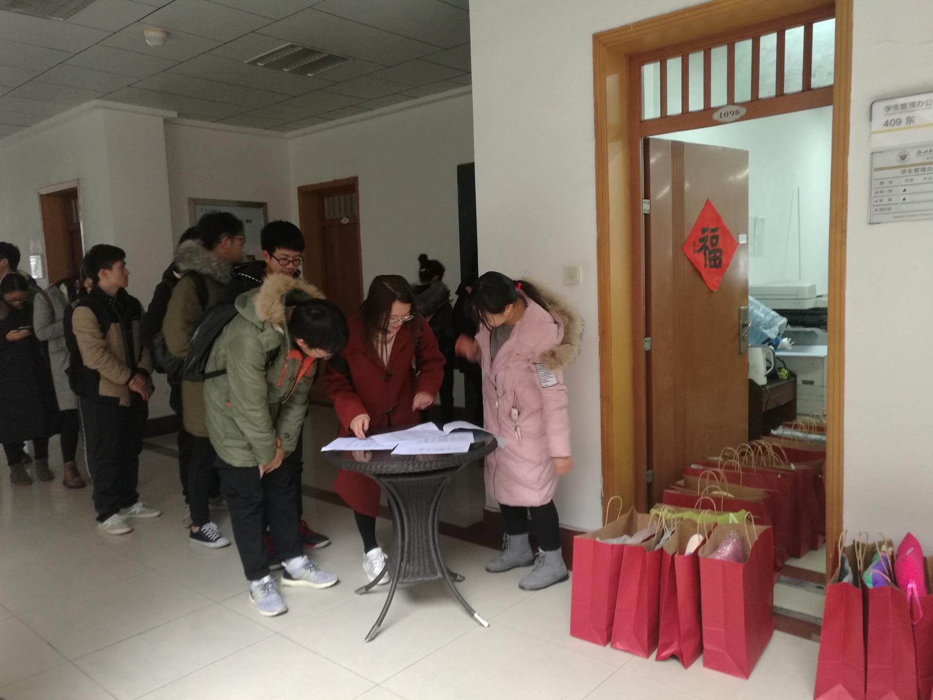 临近寒假,为力求每位家庭经济困难学生能够度过一个温暖祥和的寒假, 工商肉漫屋 于1月16日下午在学院楼409为每位家庭经济困难学生准备了一份御寒慰问品,包括手套、热水袋、坐垫、礼品袋。为同学们送上寒冬里的来自工商肉漫屋 的温暖关怀。同学们以班为单位有序地领取,脸上洋溢着开心的笑容,在感谢学院关怀的同时,同学们也怀揣着新的希望与憧憬开始新的学期规划与征程。