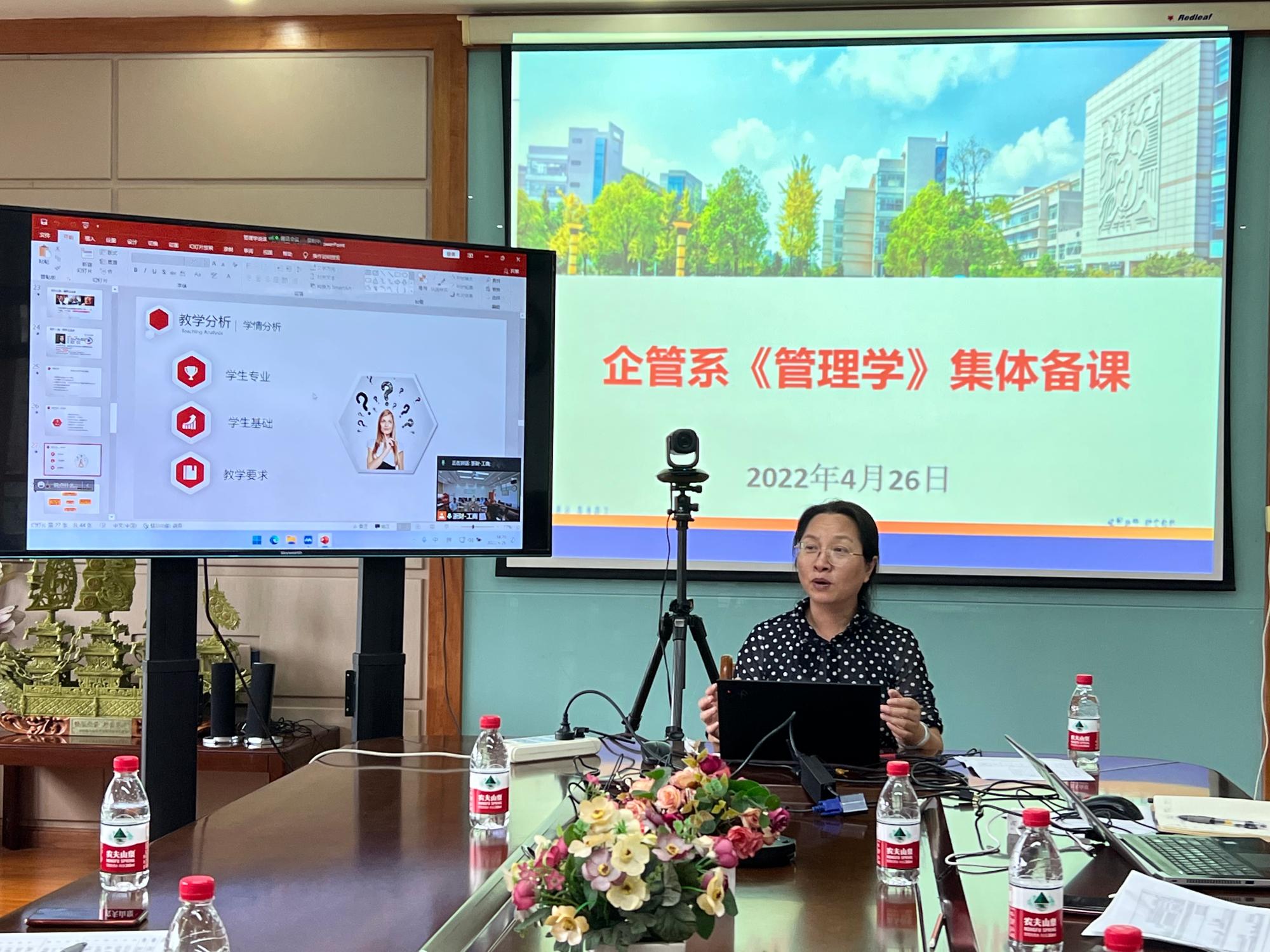 4月26日下午学院5410会议室,企业管理系《管理学》课程组开展线上线下同步集体备课活动。本次活动旨在加强课程组团队建设,进一步明确教学目标、教学理念和教学方法,以提高课堂教学质量水平。《管理学》课程组吴丽民、包兴、孙凯、尤利群、孔小磊、倪文斌等老师线下参加,林与川、罗兴武、颜涛、唐春晖、张维维、洪雁、吴军、周丹、贺锦江、赵雨菡等老师线上参加,教学办赵红老师参加了本次活动。