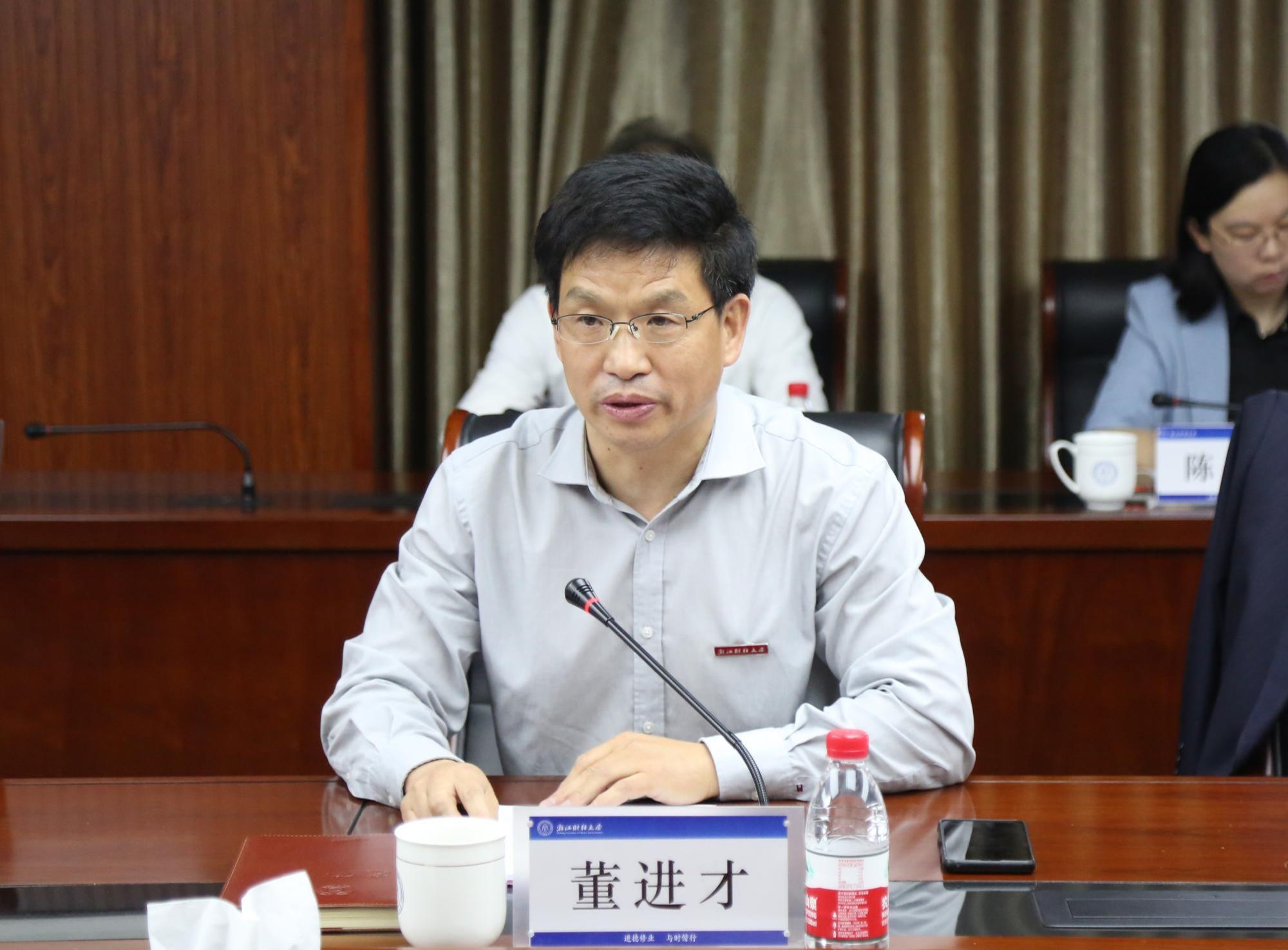 副校长董进才教授就我校工商管理专业课程建设、科研成果、师资队伍、学科竞赛成绩、考研升学率等情况做详细介绍。他表示希望通过虚拟教研室,双方共同探讨,力求提升专业办学水平。