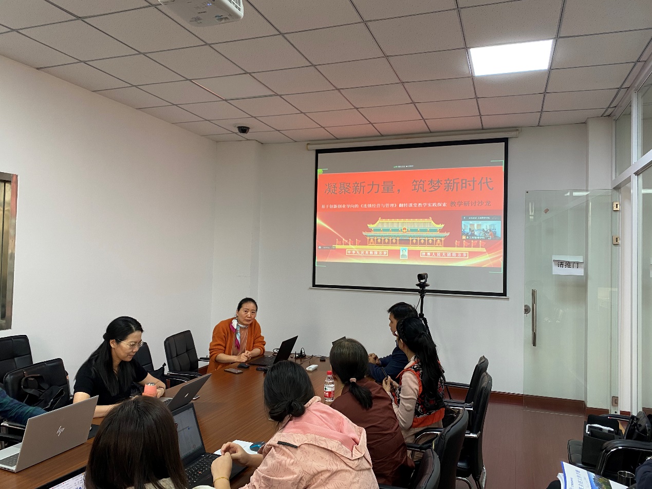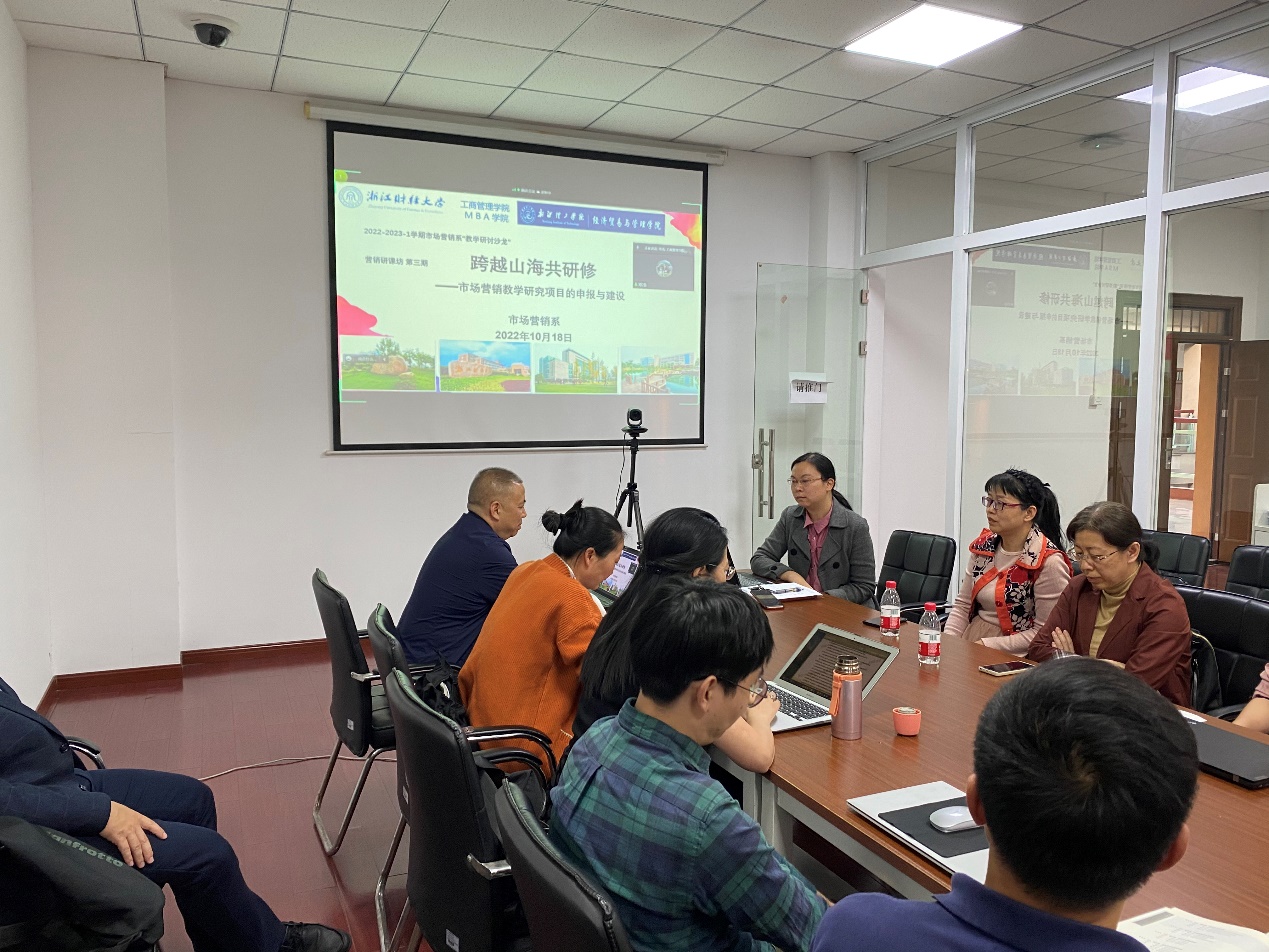 之后,郭军灵老师系统探讨了另一项省级教学改革研究项目《创业导向的市场营销学课程教学范式改革》的教学思路、内容安排以及实训环节。郭老师以大学生创新创业等竞赛项目为依托,帮助学生在“做中学”、“学中做”,从而更加深刻地理解市场营销课程的知识点,掌握更多的实践技能。
