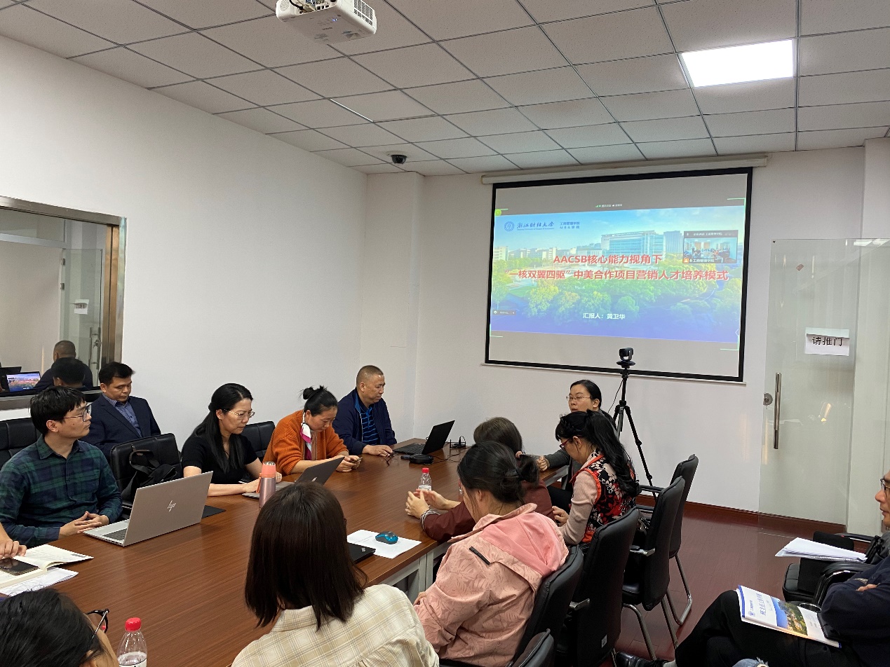 首先,黄卫华老师就中美营销项目的成功经验做了分享。重点讲解了中美项目的创始之艰难,以及在学科建设、人才培养、教师交流、促进国际合作等方面对市场营销系乃至学院发挥着重要作用。同时,祝贺中美合作办学项目衍生的“AACSB核心能力视角下‘一核双翼四驱’中美合作项目营销人才培养模式”,获得校级教学成果特等奖。