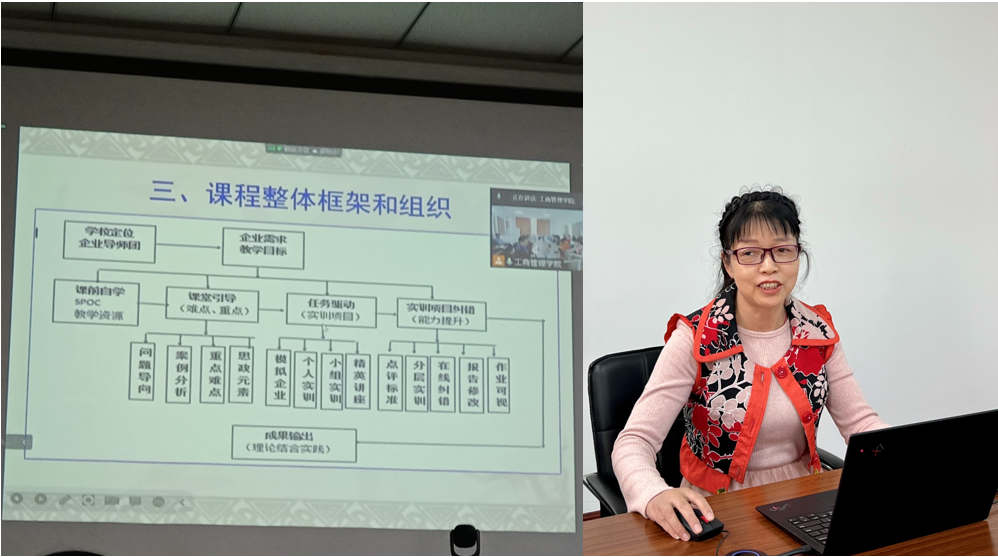 紧接着,陈水芬老师就省级一流课程《网络营销》的设计和教学方案进行了深入地介绍。陈老师分享了申报省级一流课程的成功经验,并且详细讲解了《网络营销》课程的设计和实训环节,尽可能地帮助学生认识到《网络营销》的重要性和实用性。通过翻转课堂、可视化作业递交和相互点评机制,陈老师将教师授课、学生听课和自主实践紧密的结合,充分体现了实践和就业导向。