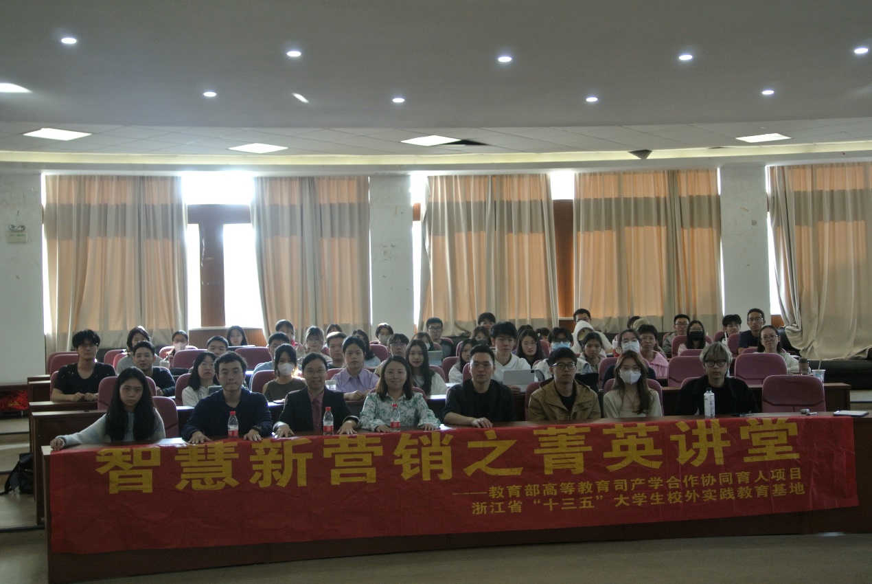 楼217报告厅奉献了一场精彩的《全场景门店经营》的主题报告。本次活动由浙江省“十三五”省级大学生校外实践教育基地负责人,市场营销系主任陈颖老师主持,21级数智管理创新班、中美市场营销,会计专业以及新疆理工学院共计150余名师生通过线上线下的方式参与活动学习。