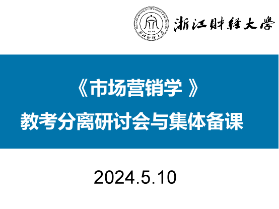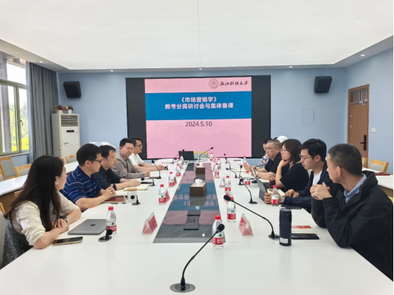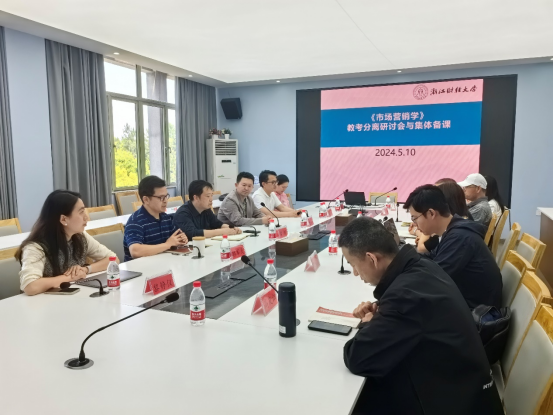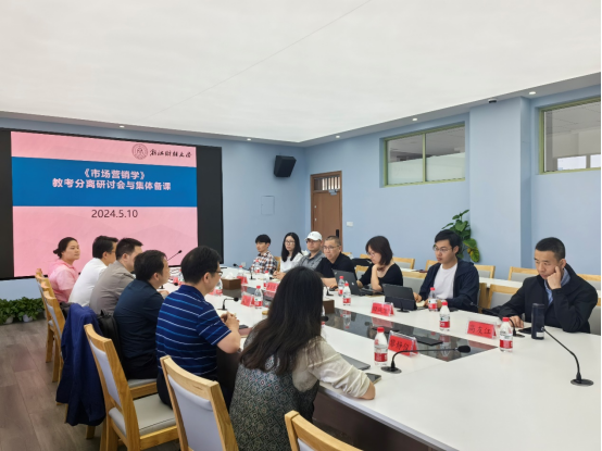《市场营销学》课程组于2024年5月10日在肉漫屋 楼416会议室顺利召开《市场营销学》课程教学研讨会。本次课程研讨会主题为:教考分离与《市场营销学》集体备课。规划《市场营销学》课程教考分离行动方案和集体备课将教考分离落到实处。本次课程研讨会旨在响应学校的“新财经战略”中的新培养体系建设。推进学校教育教学管理改革,完善教学管理制度,客观、公平、公正地评价教学效果,更好地发挥考试有效检验和提升教学质量的杠杆作用,提高本科教学水平和人才培养质量。研讨会邀请了浙江树人大学肉漫屋 市场营销系主任、市场营销专业负责人曾锵教授和绍兴文理学院商学院企业管理系主任赵江副教授参加。研讨会由《市场营销学》课程负责人郭军灵副教授主持,《市场营销学》课程组11位专业老师参加了会议。