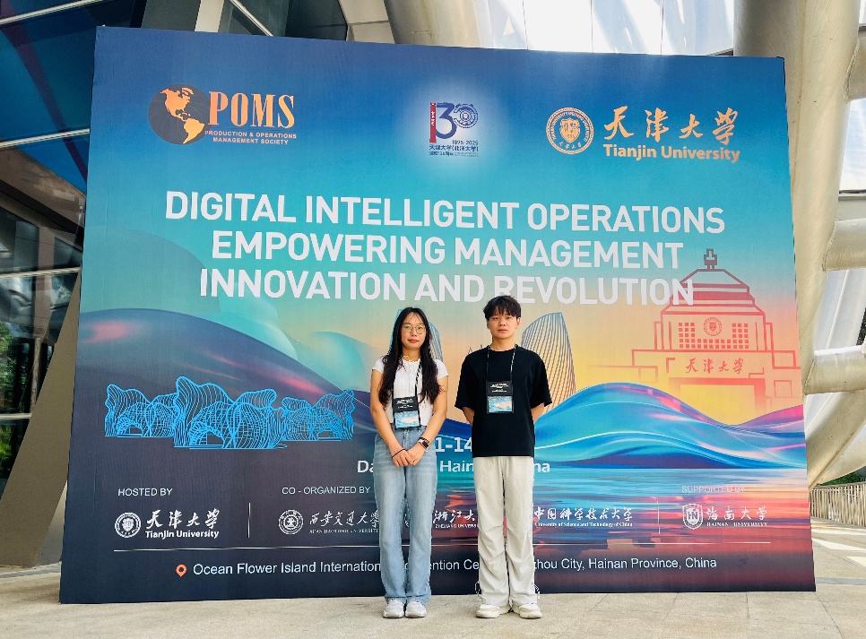 2025年7月11日至14日,2025年中国生产与运营管理(POMS)国际会议在海南省儋州市海花岛国际会议中心成功举办。会议以“数智化运营赋能管理创新与变革”(Digital Intelligent Operations Empowering Management Innovation and Revolution)为主题,由天津大学主办,浙江大学、中国科学技术大学、西安交通大学协办,海南大学特别支持。信息管理系教师张琦与2024级管理科学与工程专业研究生郑翔益参加了此次会议。