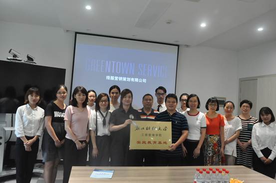 市场营销系六位教师携六位本科生,前往位于杭州市西湖区文二路391号西湖国际科技大厦的浙江绿服营销策划有限公司进行调研,与绿服营销总经理袁鸢、常务副总刘美欧及企业高层管理人员洽谈共建房地产营销策划实践教育基地以及房地产营销策划合作事宜。