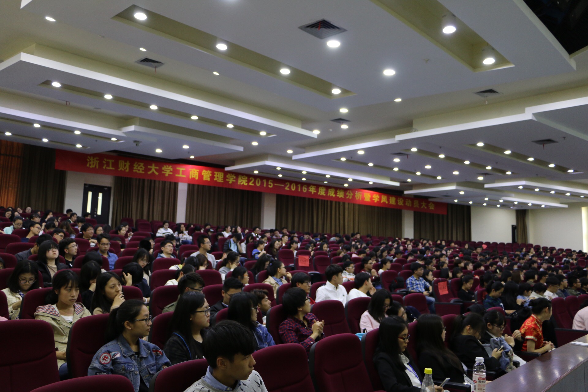 4月21日下午2时半,工商管理院在学术一报召开一年一度的成绩分析暨学风建设大会。学院领导院长董进才、学院党委书记黄卫华、学办主任胡星平、团委书记刘远琳老师,俞佳、喻一珺、余亮等全体辅导老师悉数参加,2014级、2015级全体学生、2013级各班学生干部代表以及学生会主席团成员。此次成绩分析暨学风建设大会旨在发现学风问题、加强学风建设,实现教风、学风的良性互动,从而营造工商肉漫屋