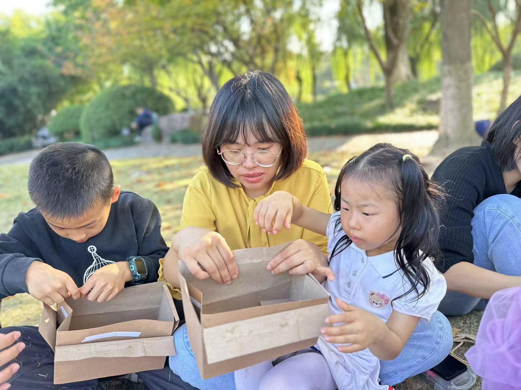 废物利用对在儿童早起教育中具有重要意义。大学生们结合废物利用的创意环保理念,激发孩子的创造力和想象力,使用生活中各类废弃纸质包装盒来进行手工创作,通过构想和制作,将废物“玩”出“百宝箱”“礼物袋”等新花样,变废为宝产生新的价值,帮助孩子们从小树立起对资源、环境的忧患意识和节约意识,养成勤俭节约,保护环境的良好习惯和道德品质。