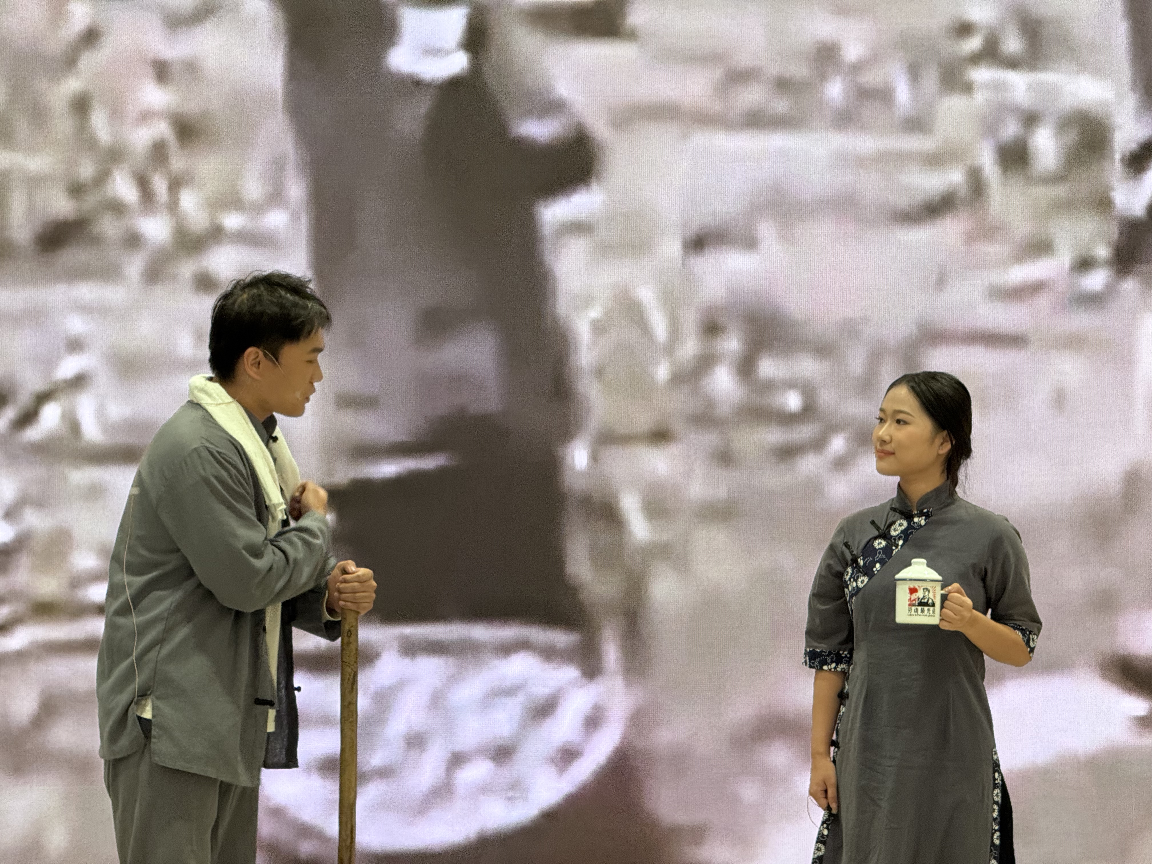 “哈哈,这地啊,现在是咱自个儿的啦!以前给地主卖命,哪有这心情哟。”冬去春来,冰雪消融。朗诵者把自己投入到角色中,把农民们在新中国广袤的热土上躬耕劳作和抒发属于他们的美好愿望的心情再次在观众的眼前显现。