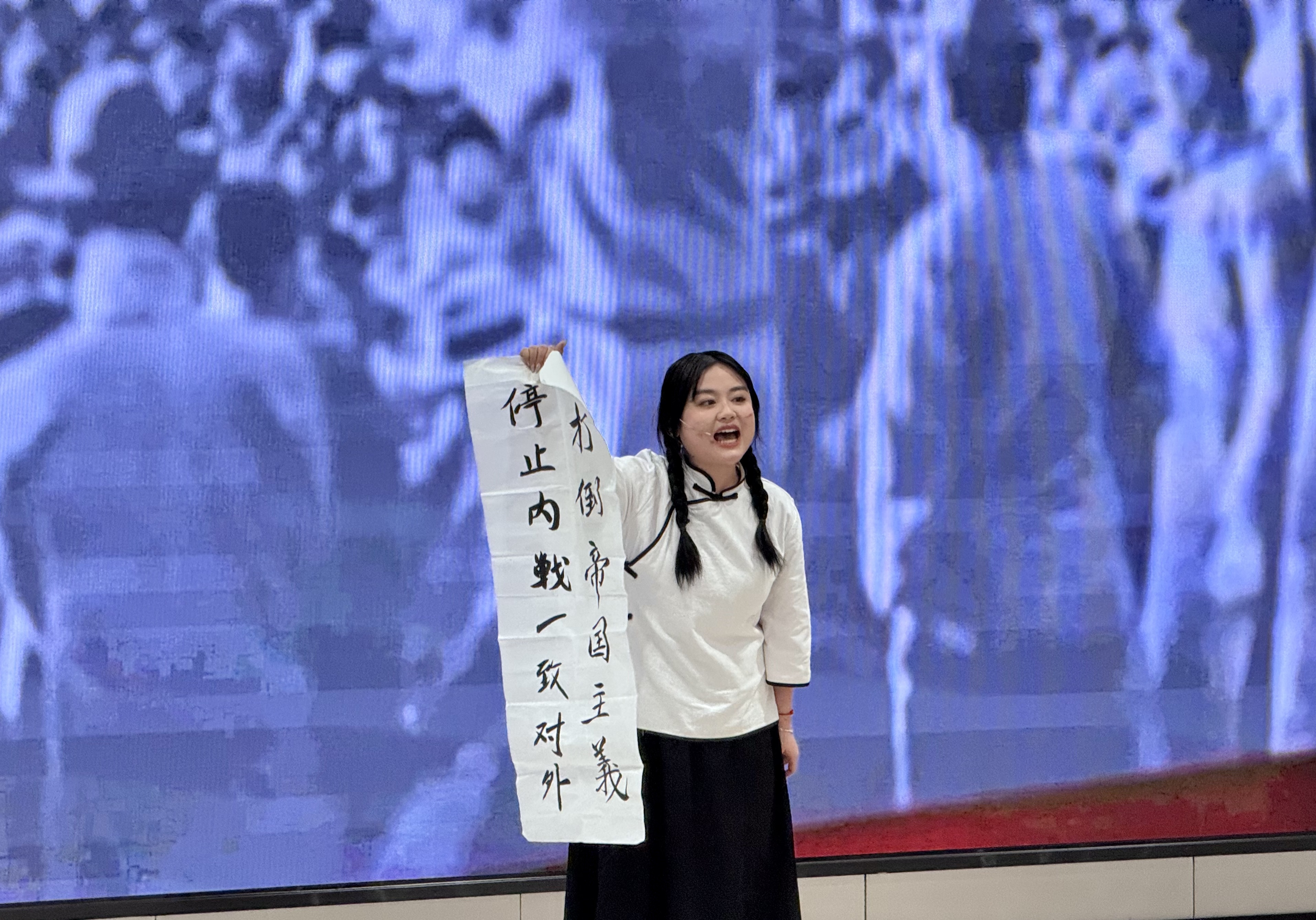熊熊烈火骤然燃起,在青年们的激昂口号中愈演愈烈。“这就是我们的呐喊!打到日本帝国主义!停止内战,一致对外!”始终相信正义的到来!