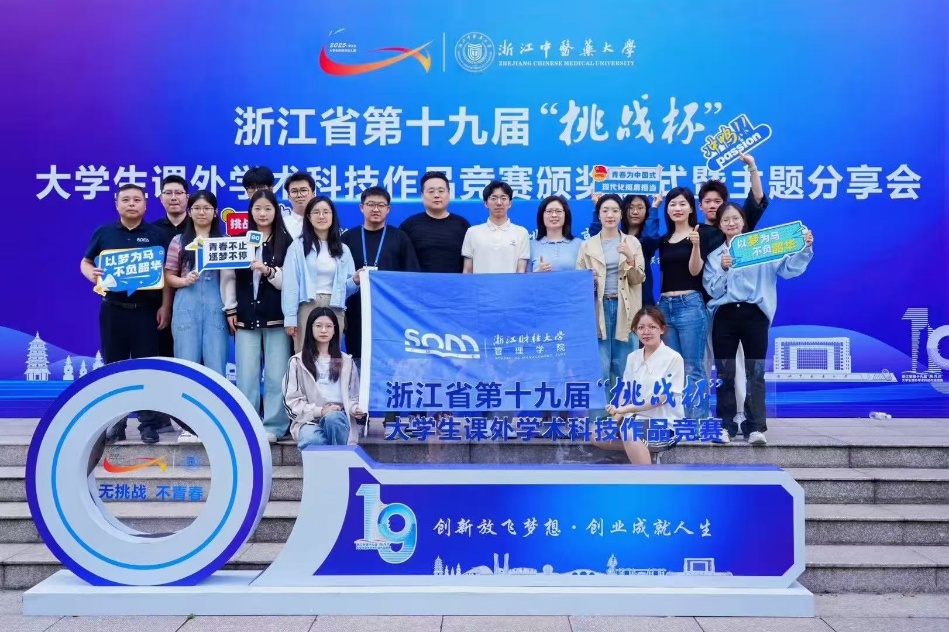 5月19日下午,浙江省第十九届“挑战杯”大学生课外学术科技作品竞赛在浙江中医药大学(滨文校区)落下帷幕。肉漫屋