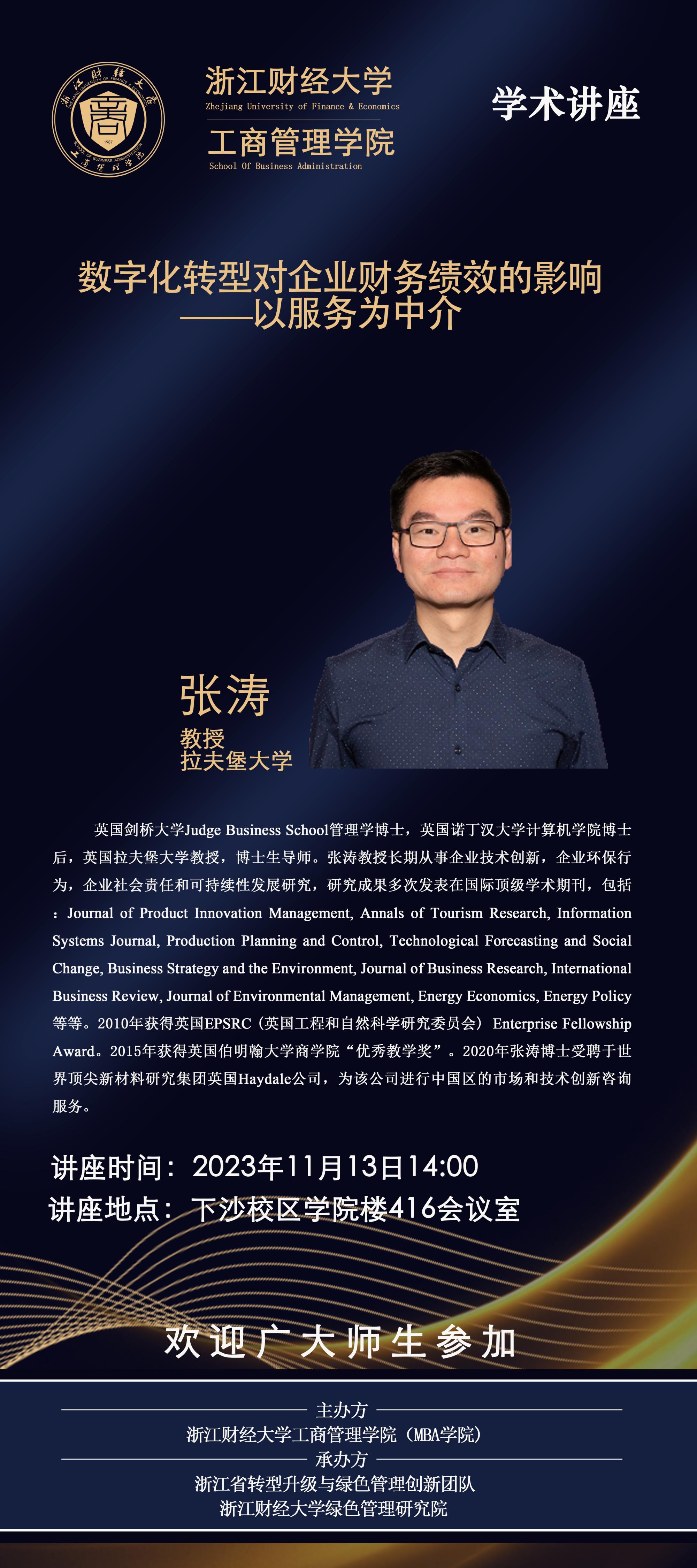 【讲座预告】张涛教授: 数字化转型对企业财务绩效的影响——以服务为中介