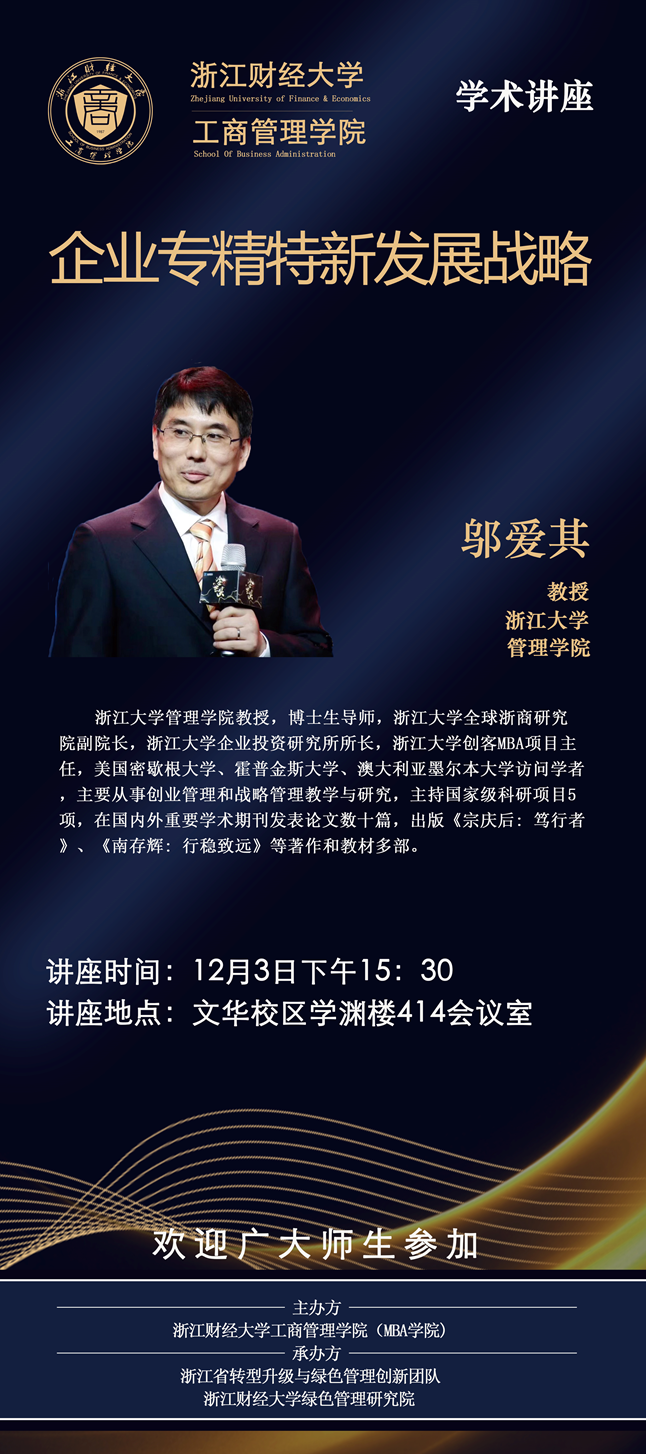【讲座预告】邬爱其教授:企业专精特新发展战略