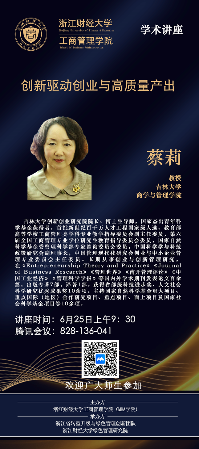 【讲座预告】蔡莉教授:创新驱动创业与高质量产出