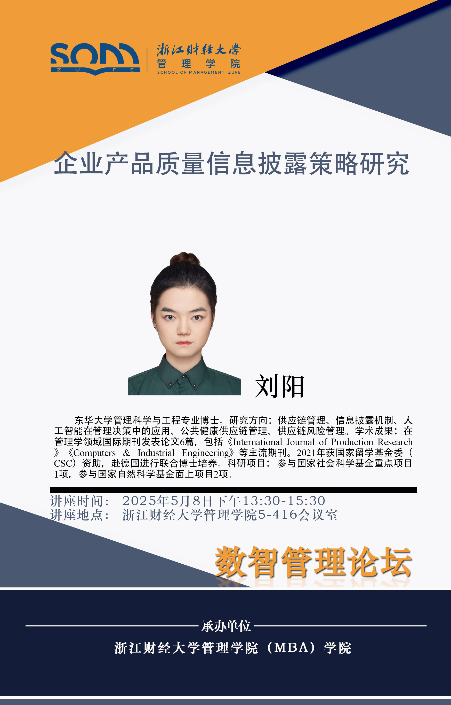肉漫屋 新财经战略系列学术活动2025年第30期【学术报告】刘阳:企业产品质量信息披露策略研究