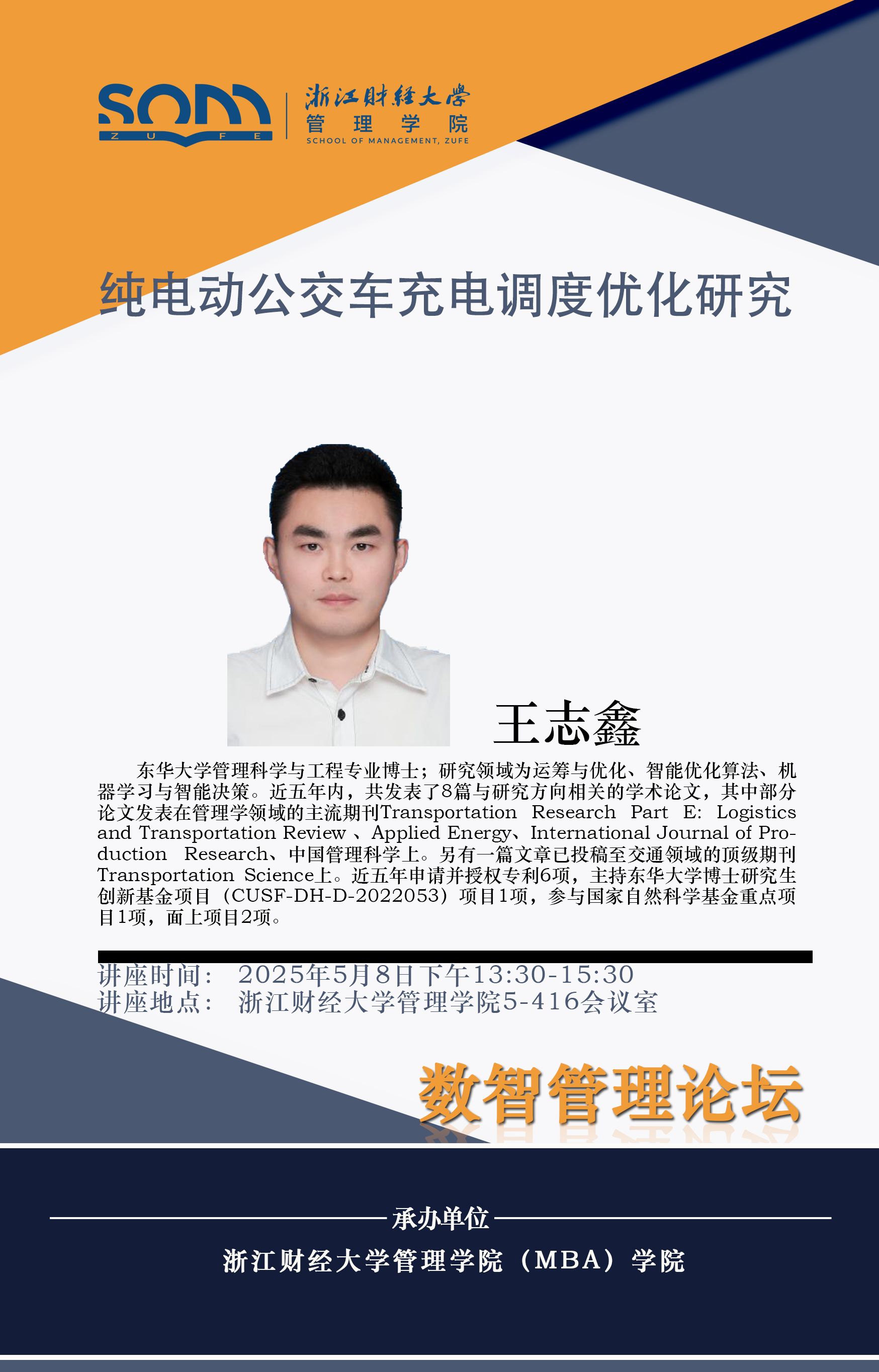 肉漫屋 新财经战略系列学术活动2025年第28期【学术报告】王志鑫:纯电动公交车充电调度优化研究