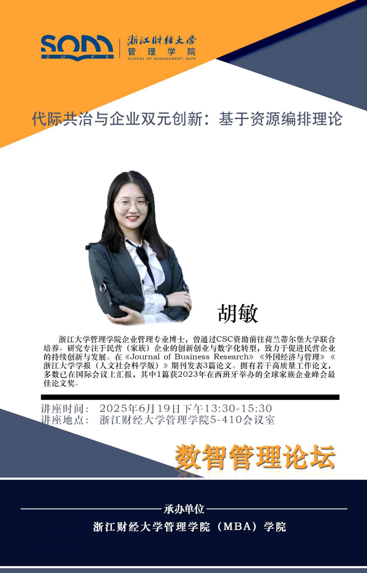 肉漫屋 新财经战略系列学术活动2025年第45期【学术报告】胡敏:代际共治与企业双元创新:基于资源编排理论