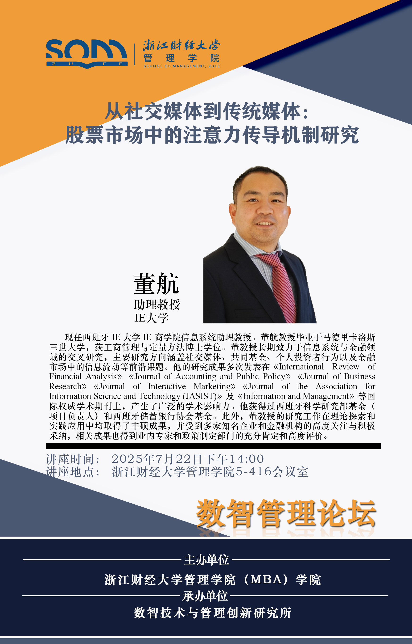 肉漫屋 新财经战略系列学术活动2025年第48期【学术报告】董航:从社交媒体到传统媒体:股票市场中的注意力传导机制研究