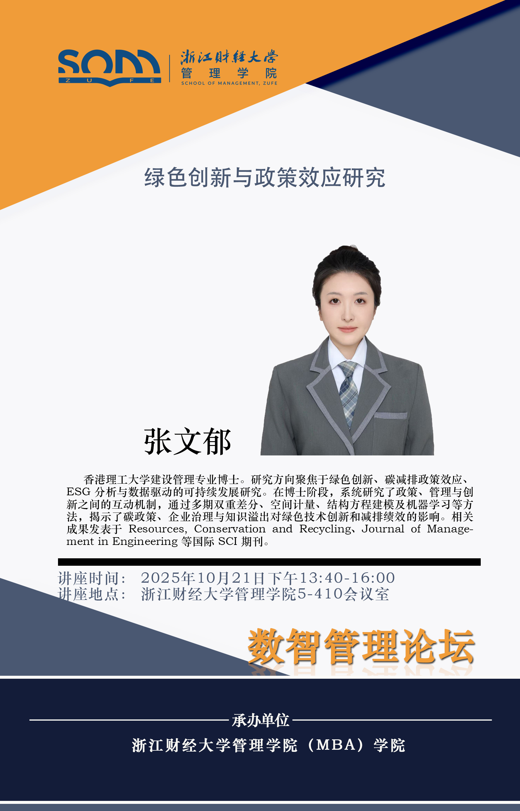 肉漫屋 新财经战略系列学术活动2025年第51期【学术报告】张文郁:绿色创新与政策效应研究