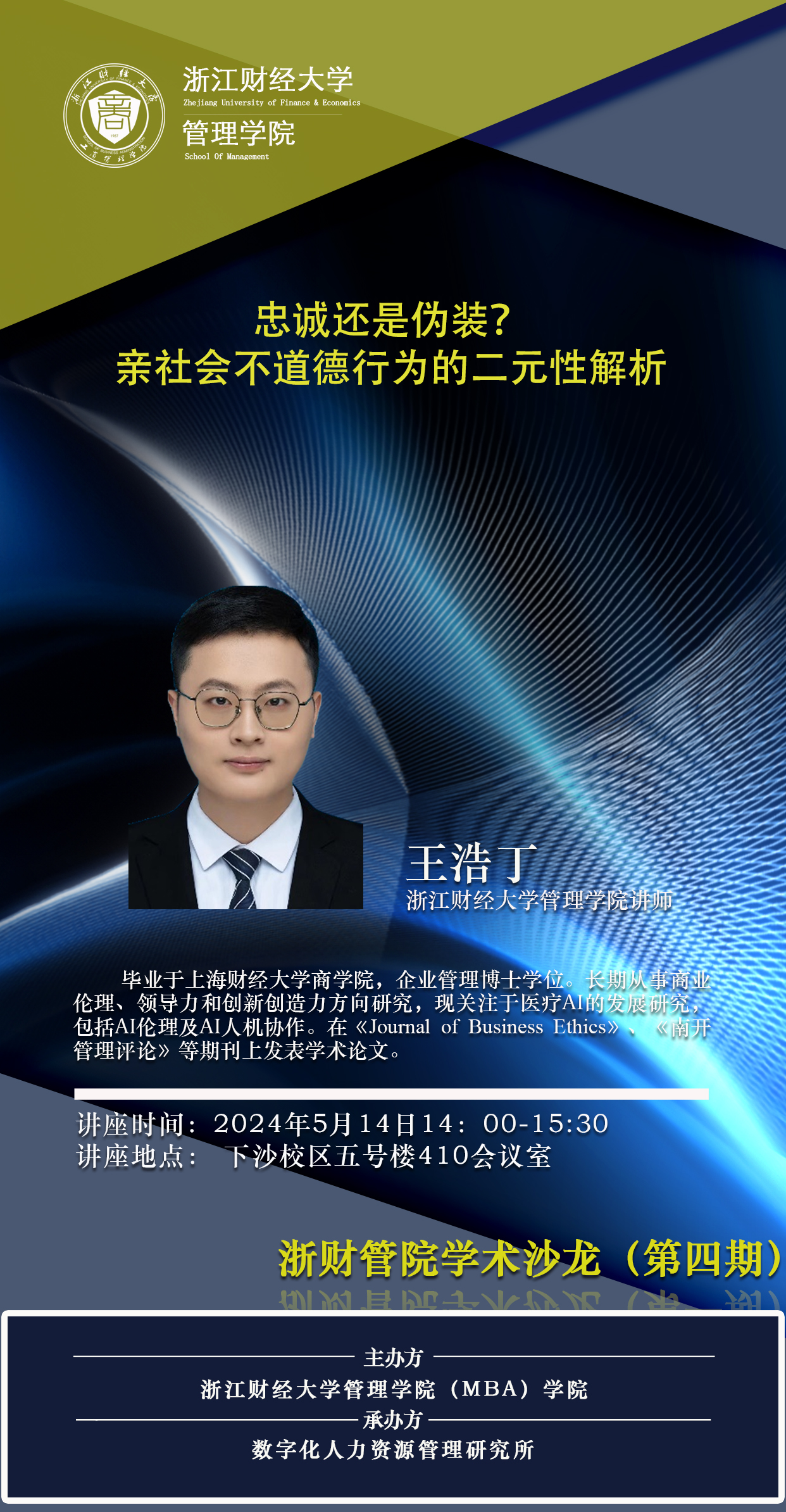 【浙财管院学术沙龙(第四期)预告】王浩丁:忠诚还是伪装?亲社会不道德行为的二元性解析