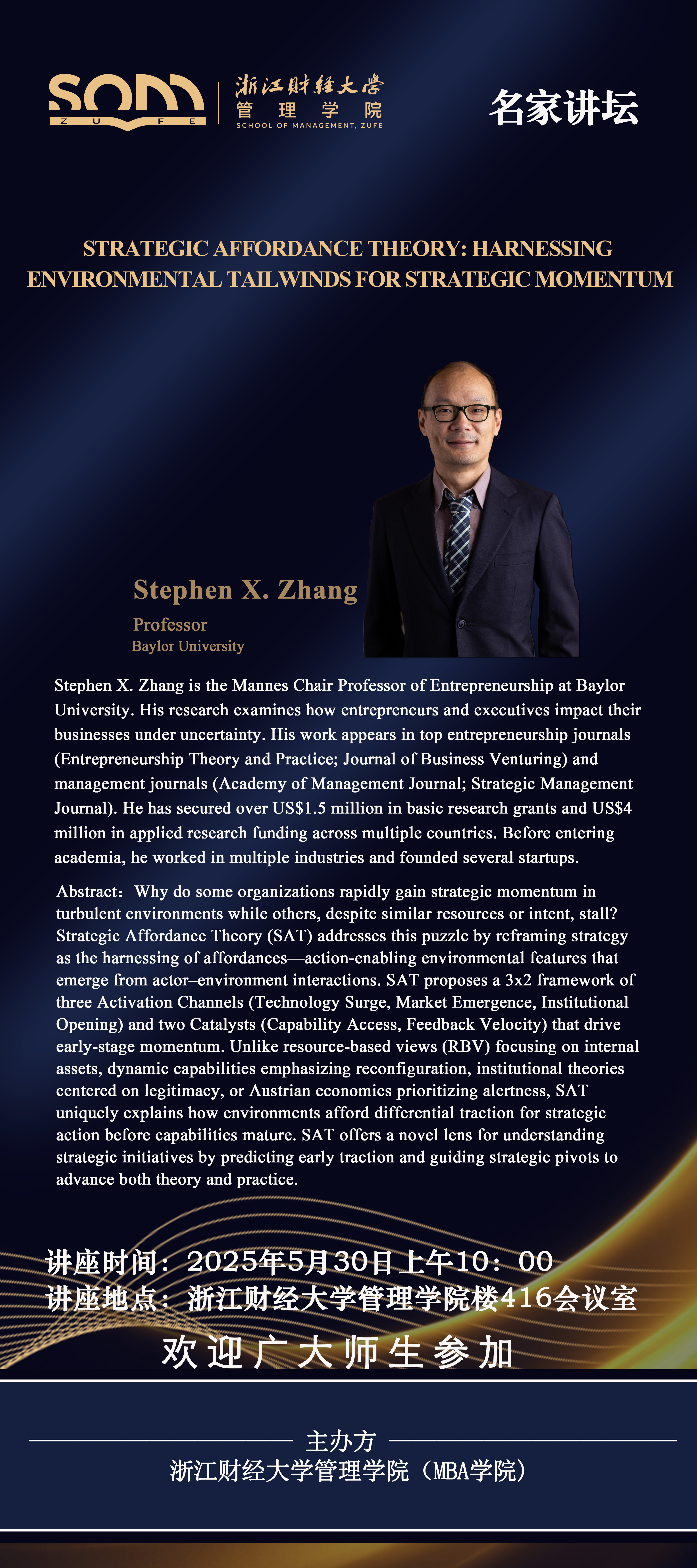 肉漫屋 新财经战略系列学术活动2025年第41期【名家讲坛】Stephen X. Zhang:Strategic Affordance Theory :Harnessing Environmental Tailwinds for Strategic Momentum