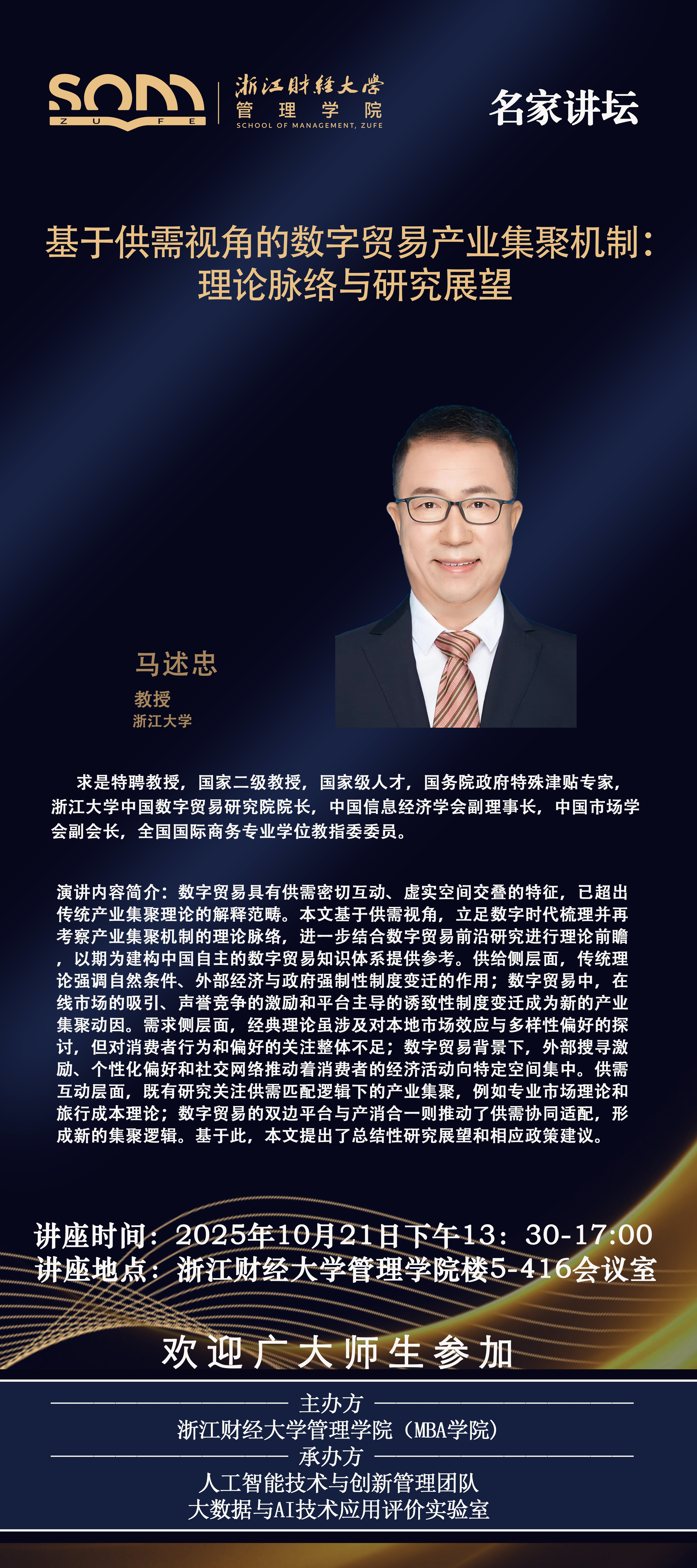 肉漫屋 新财经战略系列学术活动2025年第49期【名家讲坛】马述忠:基于供需视角的数字贸易产业集聚机制:理论脉络与研究展望