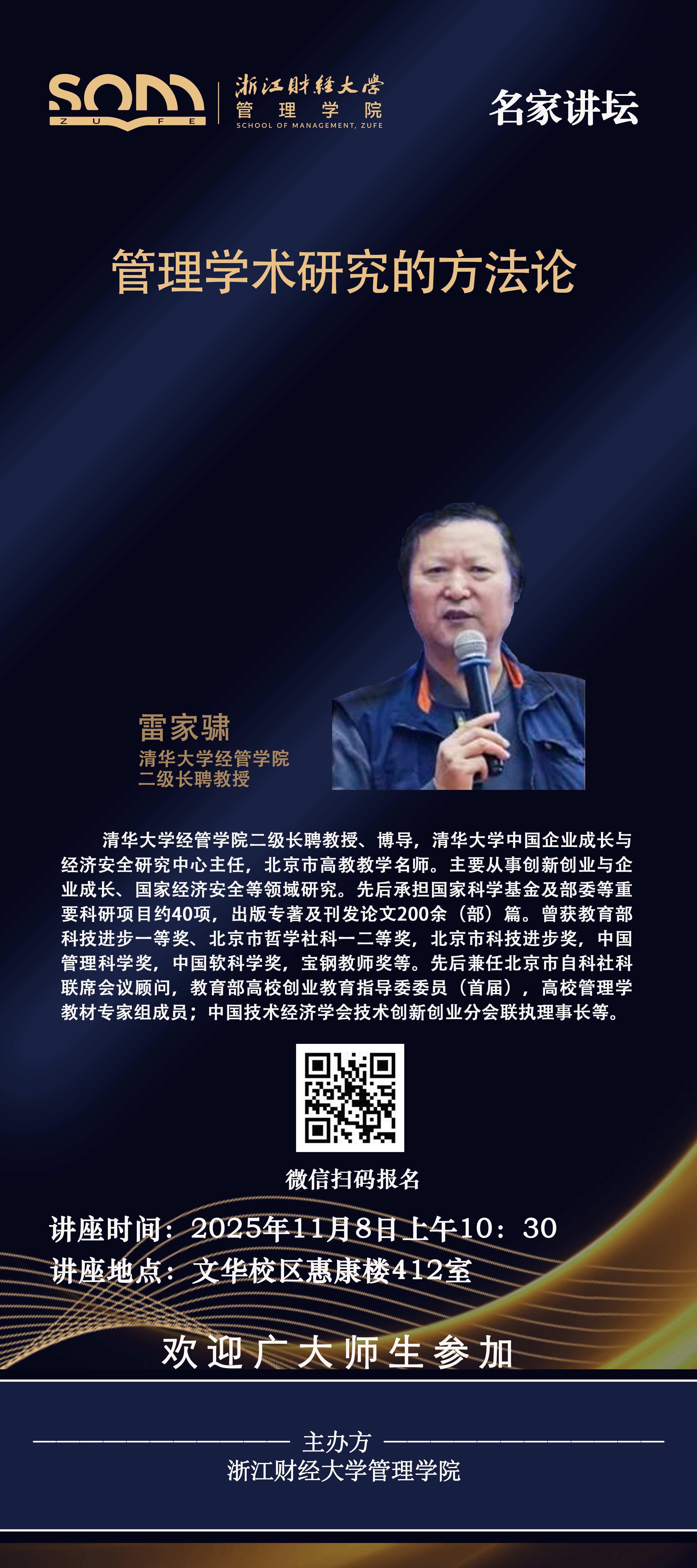肉漫屋 新财经战略系列学术活动2025年第58期【名家讲坛】雷家骕:管理学术研究的方法论
